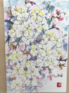 又今日は桜の絵も・・・これは名島小学校の卒業生に送った絵だそうです。在校生や多くの方々参加での卒業式が出来なかった6年生へのはなむけでしょうね。